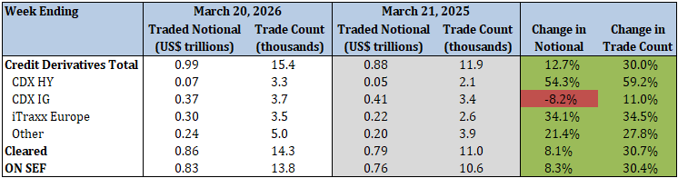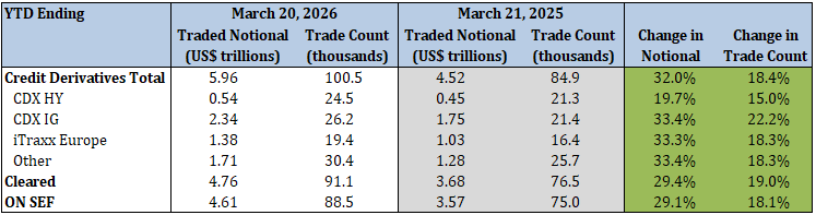 - Total index credit derivatives traded notional and trade count increased by 32.0% and 18.4%, respectively