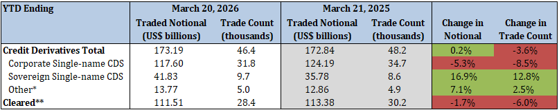 - Total security-based credit derivatives traded notional increased by 0.2%, while trade count decreased by 3.6%