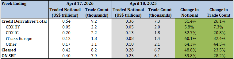 - iTraxx Europe traded notional and trade count increased by 23.0% and 10.3%, respectively