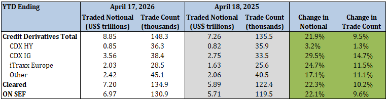 - Total index credit derivatives traded notional and trade count increased by 8.7% and 2.2%, respectively