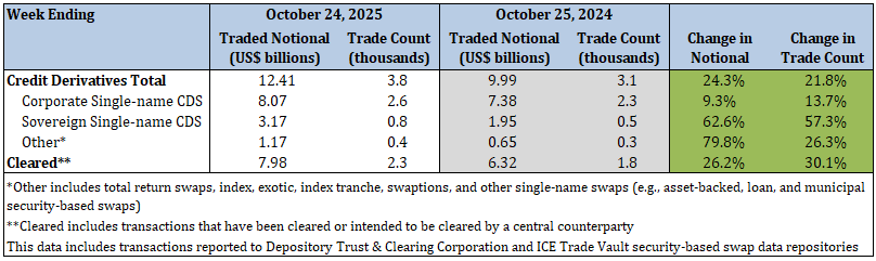 - Sovereign single-name CDS traded notional and trade count increased by 17.2% and 11.8%, respectively