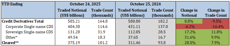 - Total security-based credit derivatives traded notional increased by 0.8%, while trade count decreased by 9.5%