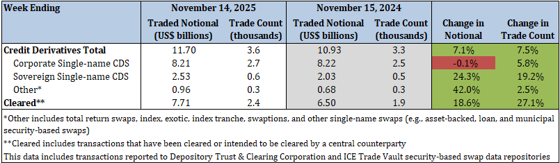 - Corporate single-name CDS traded notional and trade count decreased by 5.5% and 14.8%, respectively