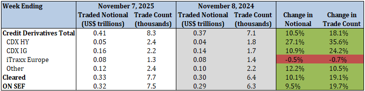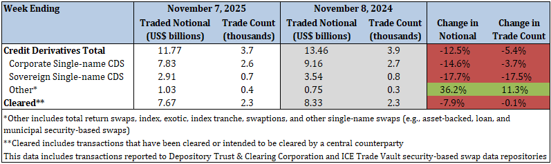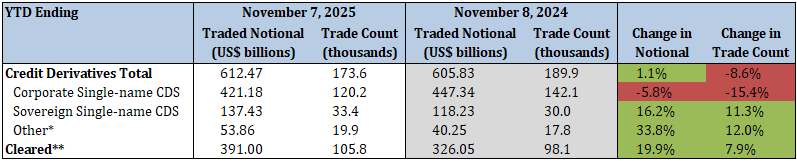- Total security-based credit derivatives traded notional increased by 1.1%, while trade count decreased by 8.6%