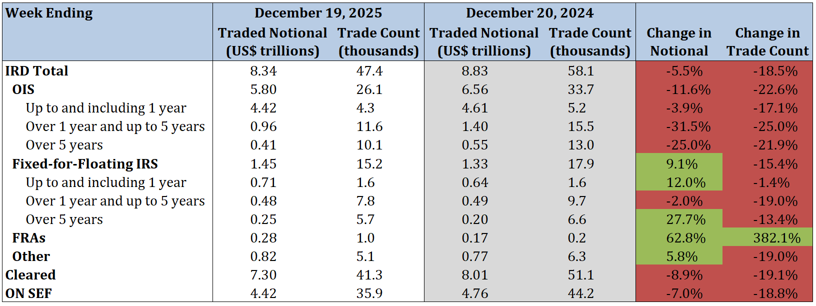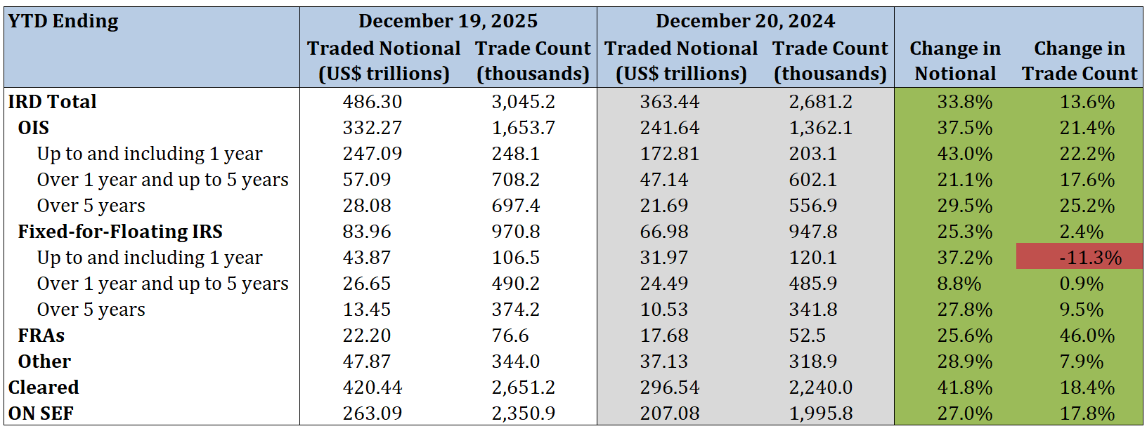 - Total IRD traded notional and trade count increased by 33.8% and 13.6%, respectively