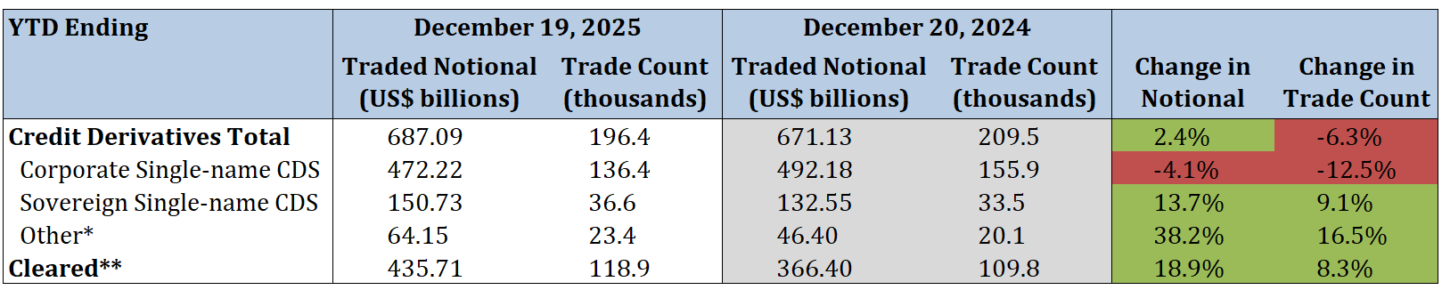 - Total security-based credit derivatives traded notional increased by 2.4%, while trade count decreased by 6.3%