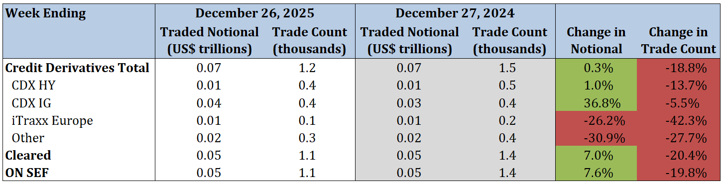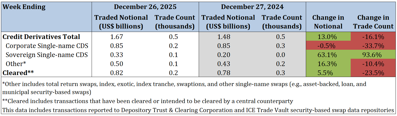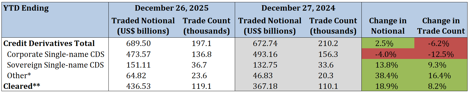 - Corporate single-name CDS traded notional and trade count decreased by 4.0% and 12.5%, respectively