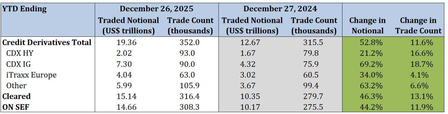 - Total index credit derivatives traded notional and trade count increased by 52.8% and 11.6%, respectively