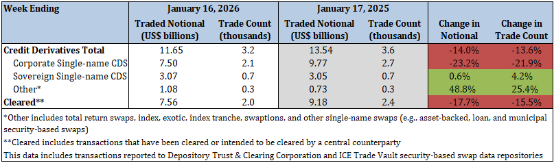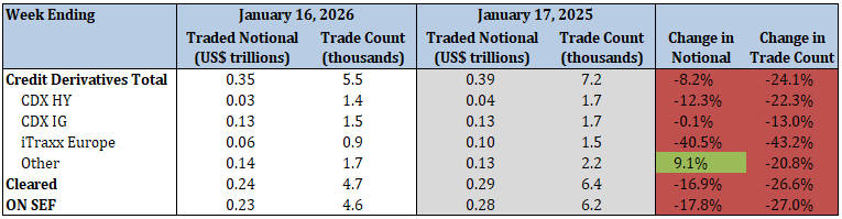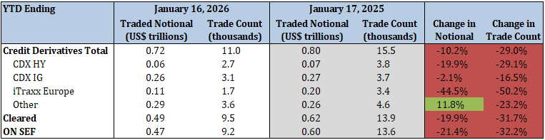 - Total security-based credit derivatives traded notional and trade count decreased by 13.7% and 15.4%, respectively