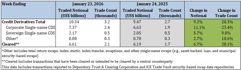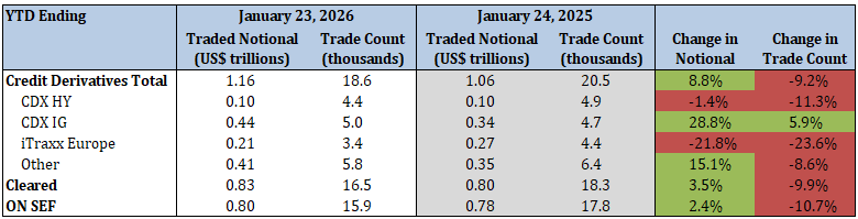 - Total security-based credit derivatives traded notional and trade count decreased by 7.7% and 6.0%, respectively