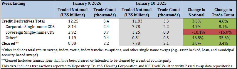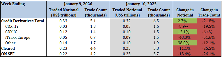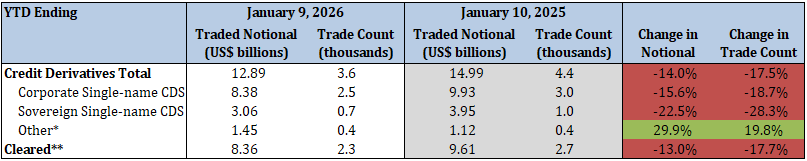 - Total security-based credit derivatives traded notional and trade count decreased by 14.0% and 17.5%, respectively