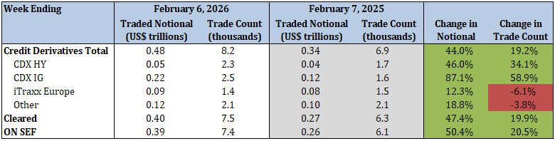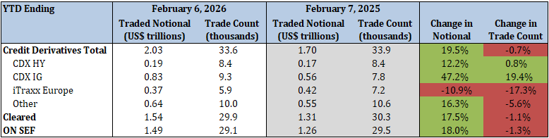 - Total index credit derivatives traded notional increased by 19.5%, while trade count decreased by 0.7%