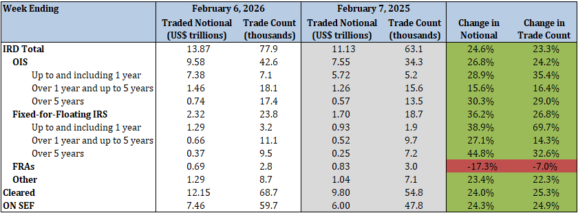 - Total IRD traded notional and trade count increased by 24.2% and 30.6%, respectively