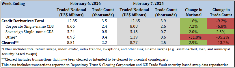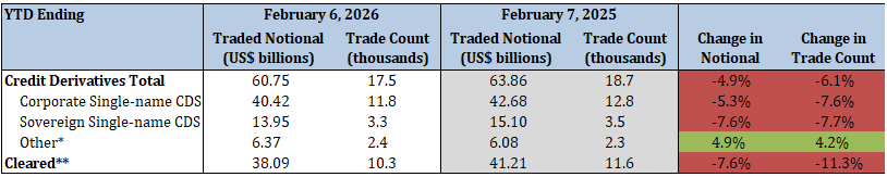 - Total security-based credit derivatives traded notional and trade count decreased by 4.9% and 6.1%, respectively