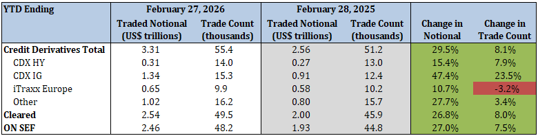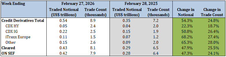 - CDX IG traded notional and trade count increased by 47.4% and 23.5%, respectively