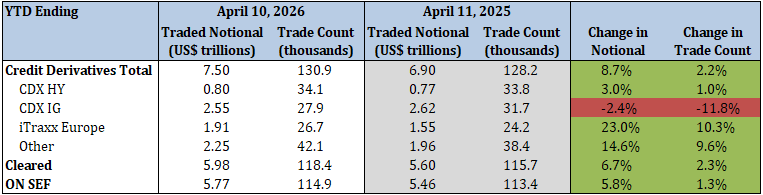 - iTraxx Europe traded notional and trade count increased by 23.0% and 10.3%, respectively