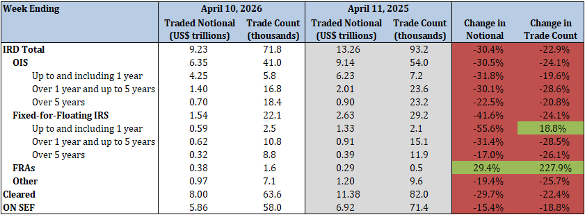 - Total IRD traded notional and trade count increased by 25.4% and 26.0%, respectively