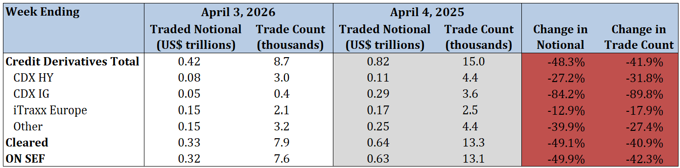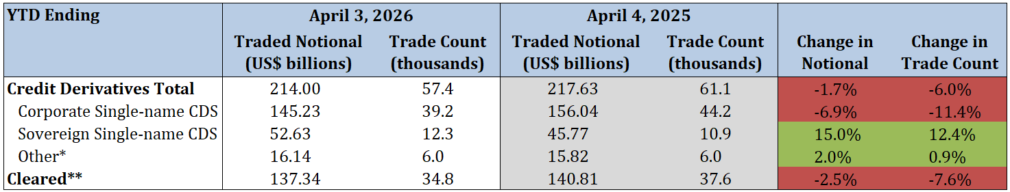 - Corporate single-name CDS traded notional and trade count decreased by 6.9% and 11.4%, respectively