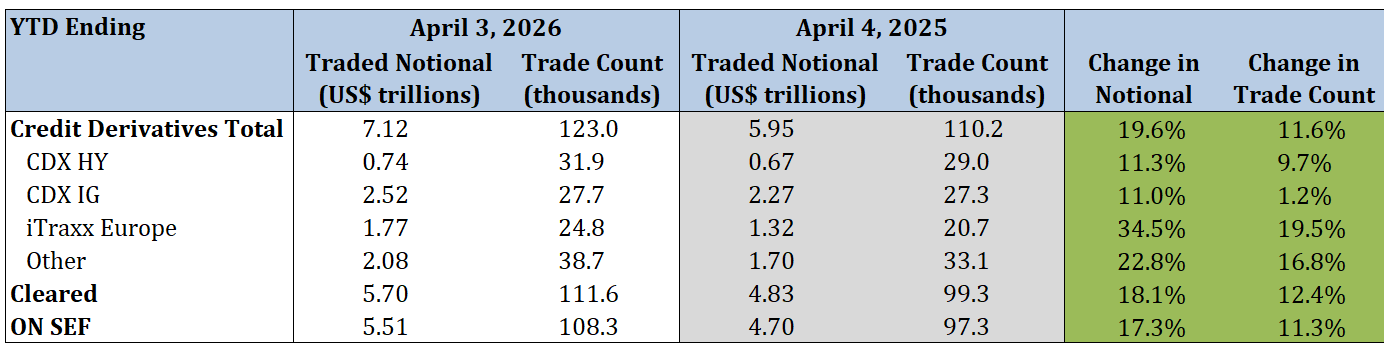 - Total index credit derivatives traded notional and trade count increased by 19.6% and 11.6%, respectively